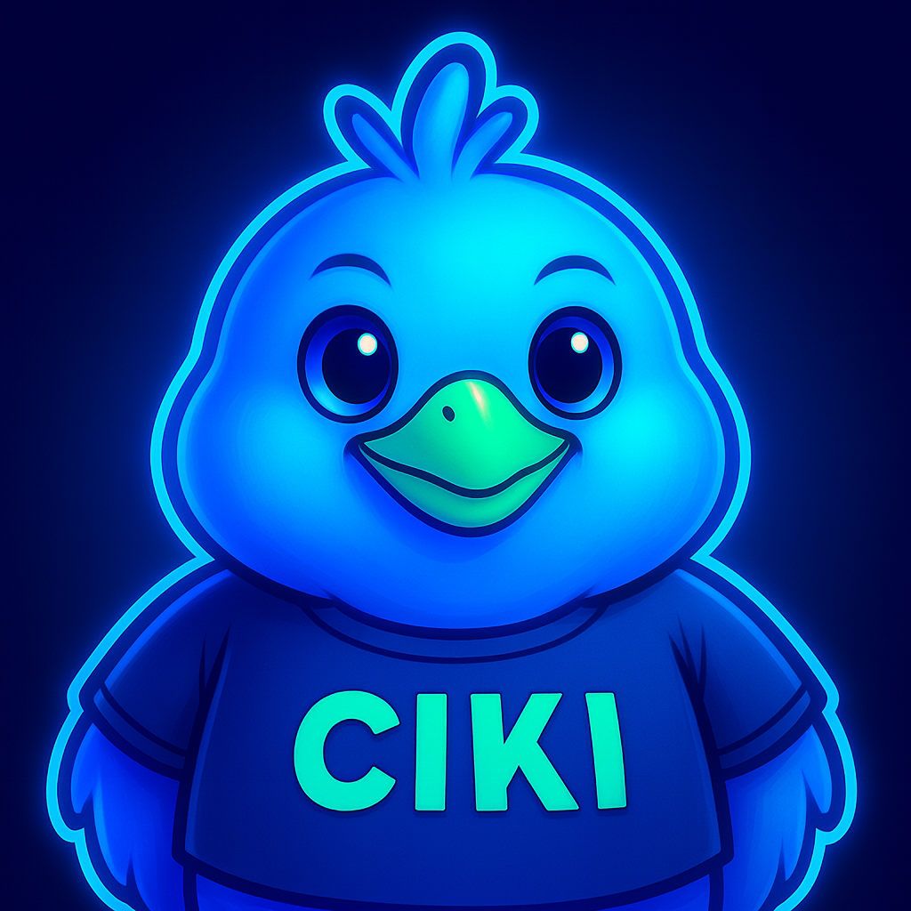Minimal one‑pager inspired by the OTC community vibe — now featuring the new blue‑glow CIKI mascot. Swap the name, links, and contract in seconds.